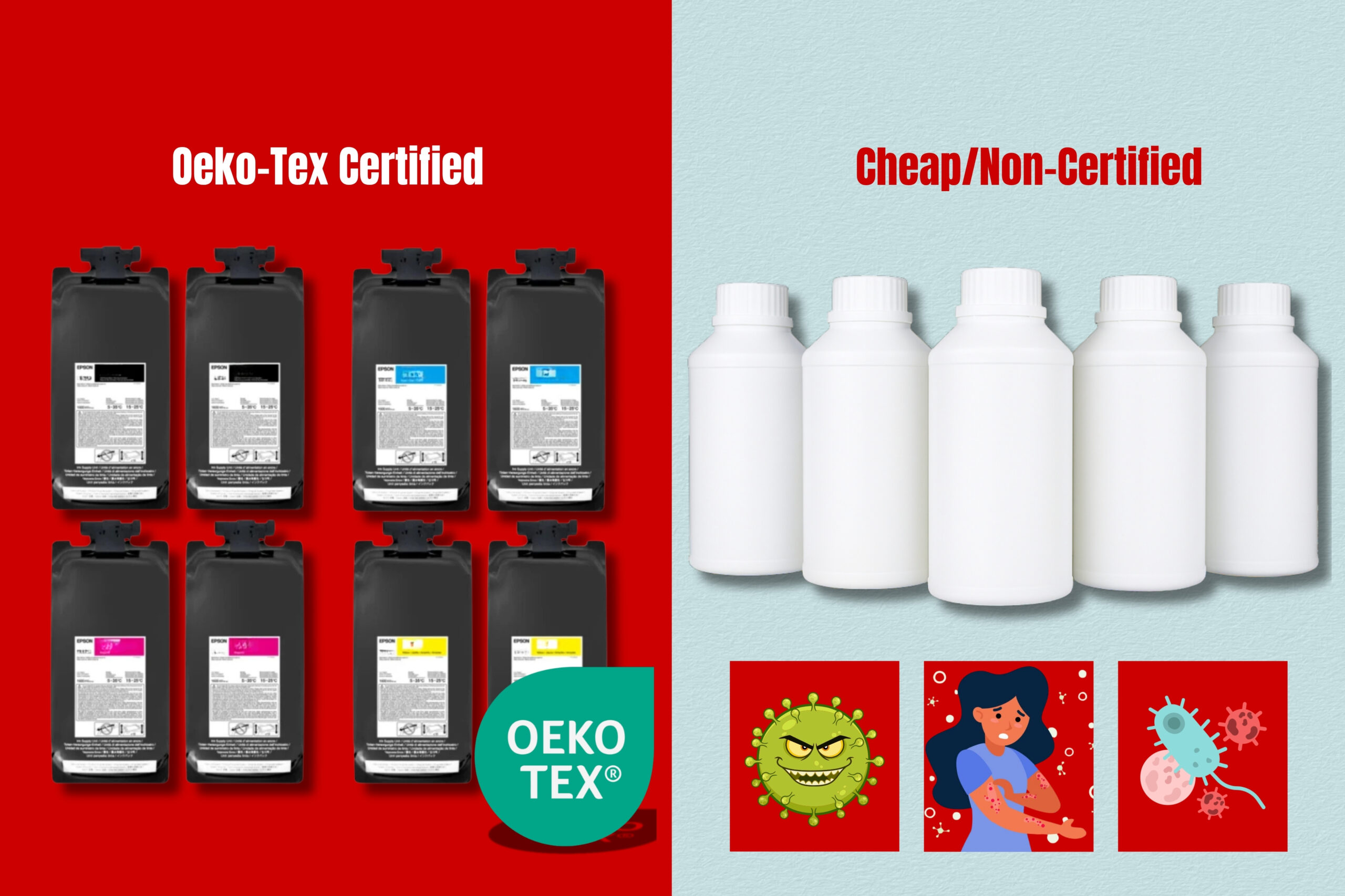 Every print we deliver is made using OEKO-TEX® certified inks — safe for daily wear and built to last.